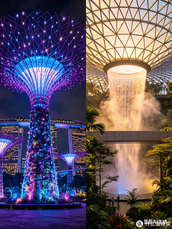 下午:滨海湾花园→云雾林(35 米室内瀑布,穿浅色衣服拍背影)